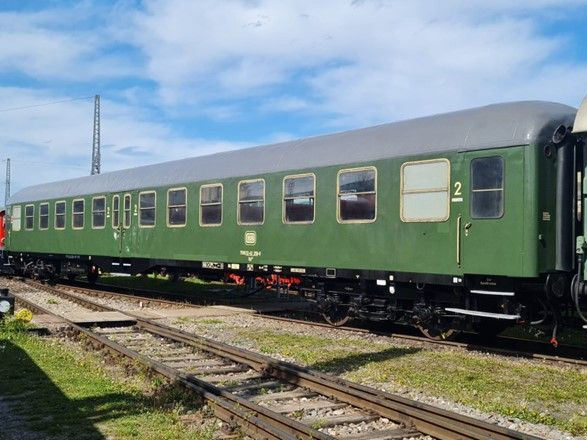 Viele unserer Fahrzeuge stehen im Freien abgestellt, da nicht genügend überdachte Fläche vorhanden ist. Somit wird auch der Lack dieser durch die Witterung schneller angegriffen. Auf Grund des Bemühens um den optischen Zustand des Wagenparks wurde entschieden, dass der Byl BEM 50 mit der Nummer 75 80 22-43 258-0 (Linke-Hofmann 1953) eine komplett neue Lackierung erhalten sollte. Besser bekannt sind diese Wagen als „Mitteleinstiegswagen". In den 1950er Jahren wurden diese Wagen entwickelt, um die nach wie vor im Nah- und Eilzugverkehr vorherrschenden Länderbahnwagen zu ersetzen. Diese Wagenbauart war in ganz Deutschland vertreten und passt somit auch gut in die Sammlung unseres Museums. Seit 1995 sind nun drei Wagen dieses Typs in Nördlingen beheimatet. Ziel war es diesen Wagen in der Jubiläumswoche zu den Bundesbahnfotozügen erstmals neu lackiert und neu beschriftet präsentieren zu können, was auch gelang.