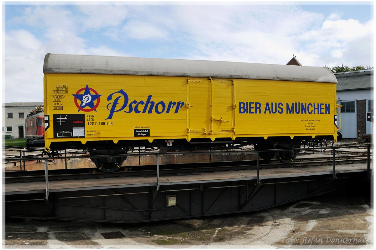 Der Schriftzug „Ladegut: Eis und Bier!" steht seit kurzer Zeit wieder in frischer Farbe auf einem Güterwagen aus der Sammlung des Vereins Bayerisches Eisenbahnmuseum e.V. (BEM). Vorangegangen waren drei Jahre Projektplanung sowie neun Monate harte Arbeit verschiedener Gewerke.